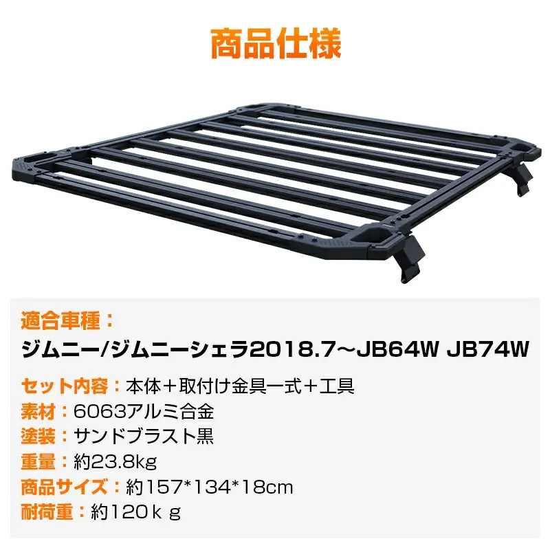 Эксклюзивный дизайн для Suzuki Jimny JB64,74W. Премиальное качество, не уступающее ведущим Японским производителям. Установка не требует сверления. Вес: около 35 кг. Размер: 158,6 * 127 см. Материал: алюминиевый сплав 6063. Грузоподъёмность: 170 кг. Цвет: чёрный. Ед. измерения: комплект.