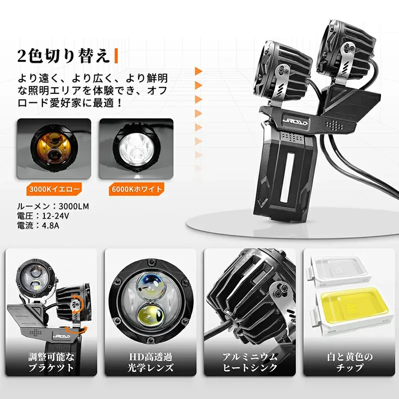 Мощная светодиодная оптика обеспечивает яркое освещение, сравнимое с дневным светом. Идеально подходит для ночной езды и бездорожья. Широкий угол рассеивания устраняет слепые зоны и формирует яркое поле перед автомобилем, улучшая обзор. Позволяет гибко переключаться между ближним и дальним светом в зависимости от условий.